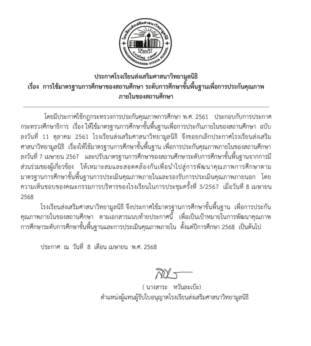 ประกาศการใช้มาตรฐานการศึกษาของสถานศึกษา